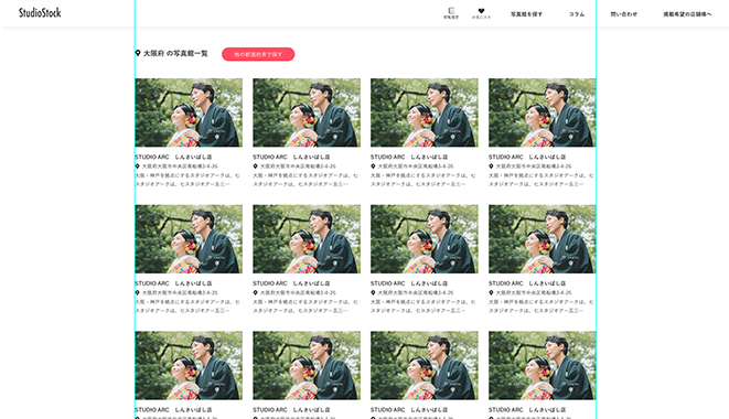 撮影プランの掲載や、実際に撮影した写真のギャラリーを